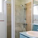 La Holiday Home Rue De Seychelles dispone di un bagno con un bagno con WC separato, una doccia e una lavatrice.